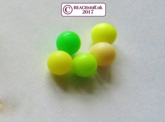 These tiny flourescent balls come with toy plastic guns. Once they have been shot onto the sand, they are lost forever - until some beachcomber comes along and picks them up. Compare these with the flourescent beads used in fishing.