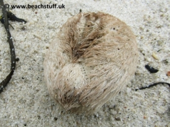 The sea potato, or heart urchin, is an urchin which lives buried in the sand. The tests often wash up on beaches, sometimes complete with its spiny coat (see below). They are generally between three and five centimetres across.