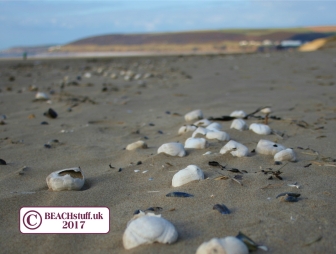 Occasionally, (if you are very lucky), a test (the name for the skeleton) of a sea urchin will wash up intact. Although, a fragment like that below is probably a more realistic goal. The urchins themselves (bottom left) live on rocky sea beds and can grow up to 10cm across. They eat seaweeds, algae and barnacles. Urchin is an old word for hedgehog and it is easy to see why sea urchins were thought of as sea hedgehogs.