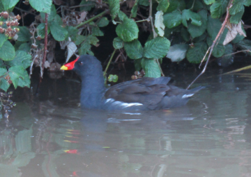 Immediately distinguishable from the moorhen because of its white, rather than red, face mark and beak, the coot is actually slightly larger and dives for its food (see clip below) whereas the moorhen stays on the surface.