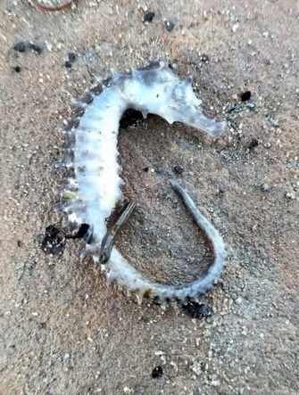 The above seahorse was found, sadly deceased, on Combe Martin Beach, North Devon, by a group of beach cleaners.